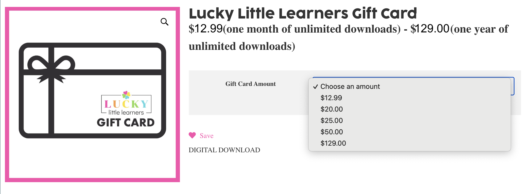 We also offer gift cards in our shop. You can select the exact amount of the All Access plan you would like to gift. (One month = $12.99 / One Year = $129.00)